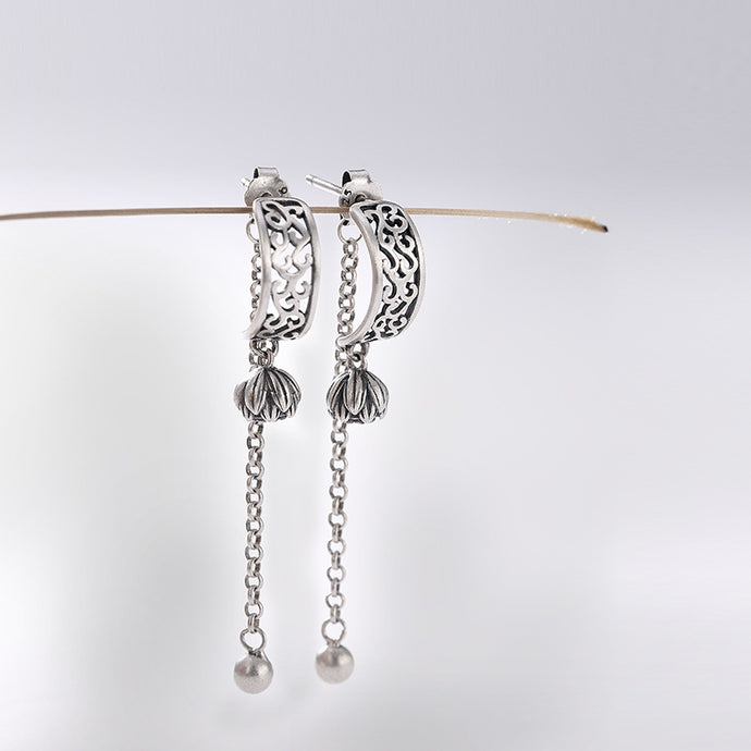 Silver Retro Personality Xiangyun Ltus Simple Art Female Antique Matte Earrings Earrings Earrings