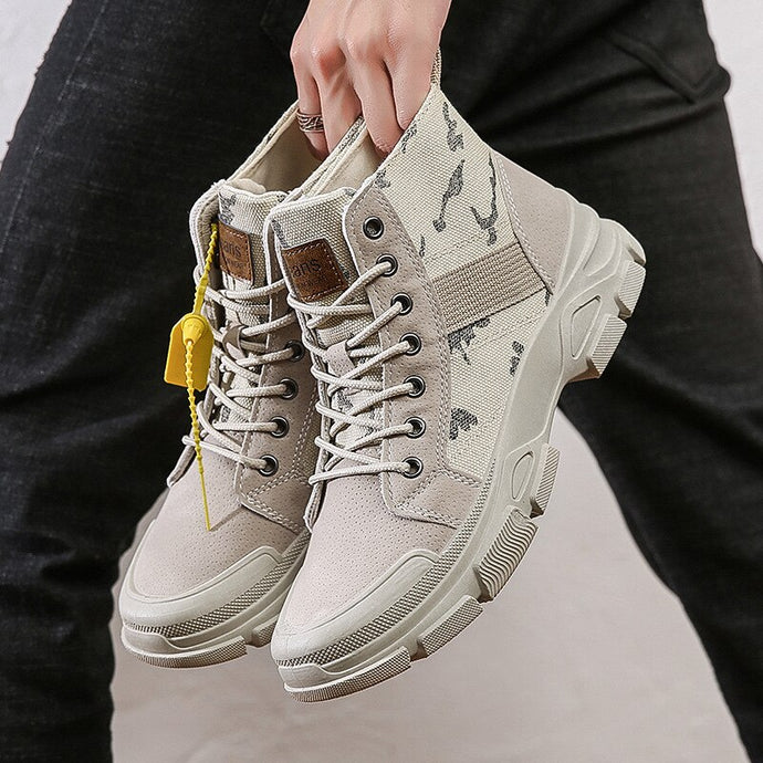 Fashion Contrast Color Cowhide Tooling Men's Boots