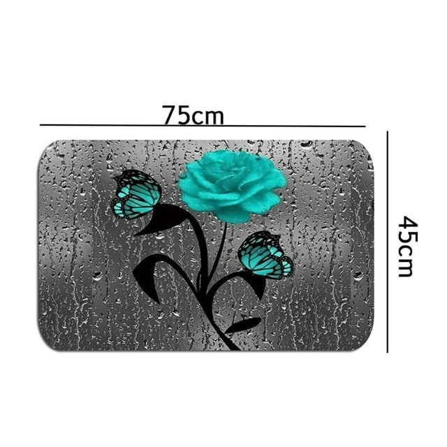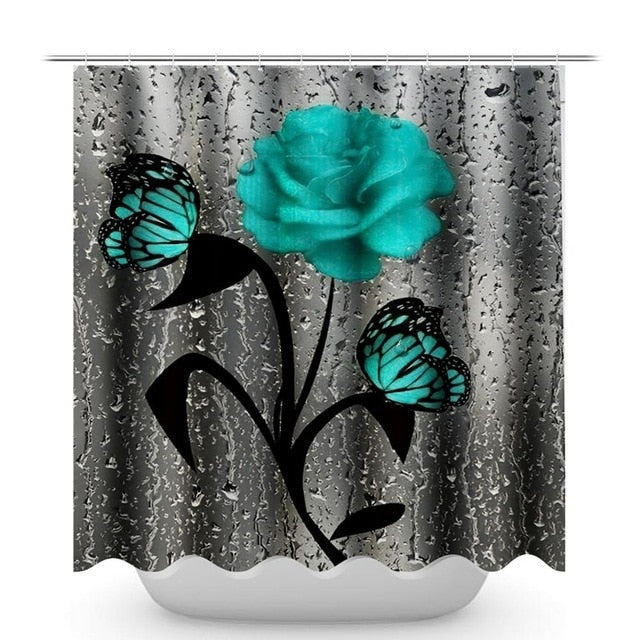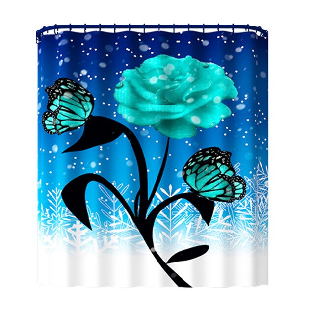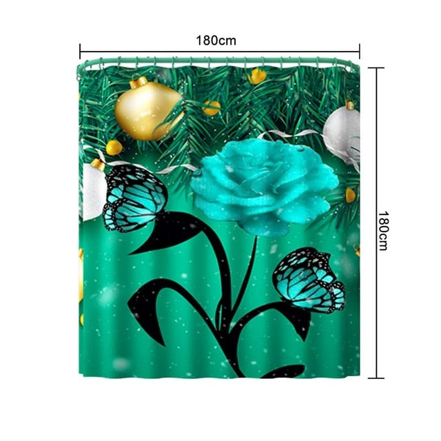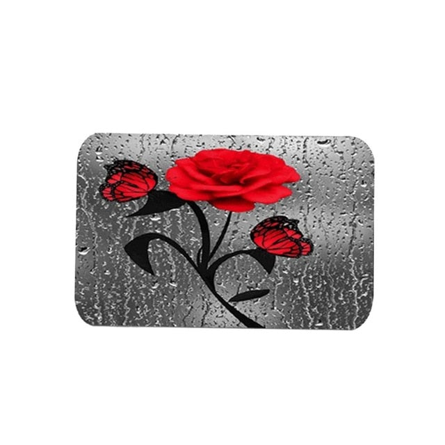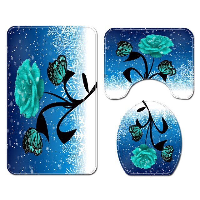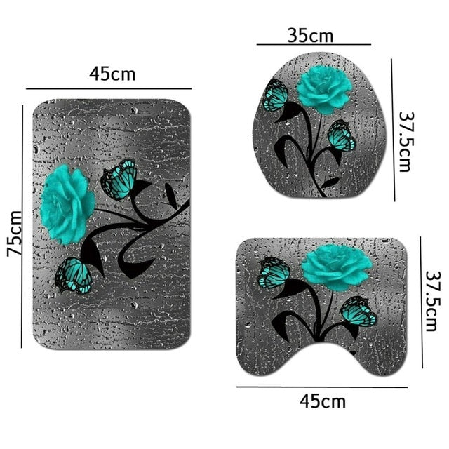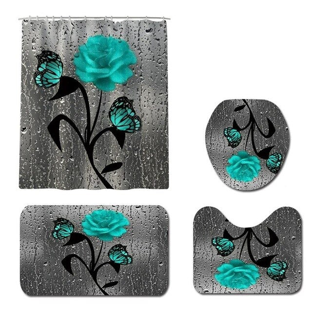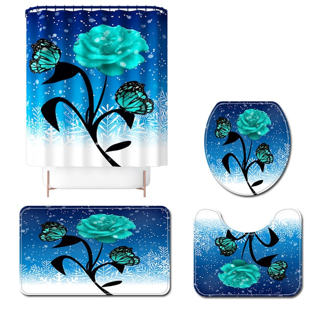 Red Rose&Butterfly Bathroom Non-slip Mat Set Durable Waterproof Shower Curtain Set Pedestal Rug Lid Toilet Cover Bath Mat Rugs
