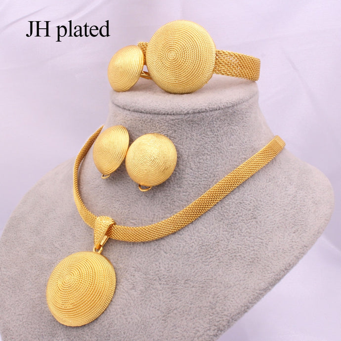 Jewelry sets African 24k gold for women Dubai bridal party wedding gifts Round Necklace Bracelet earrings ring set jewellery