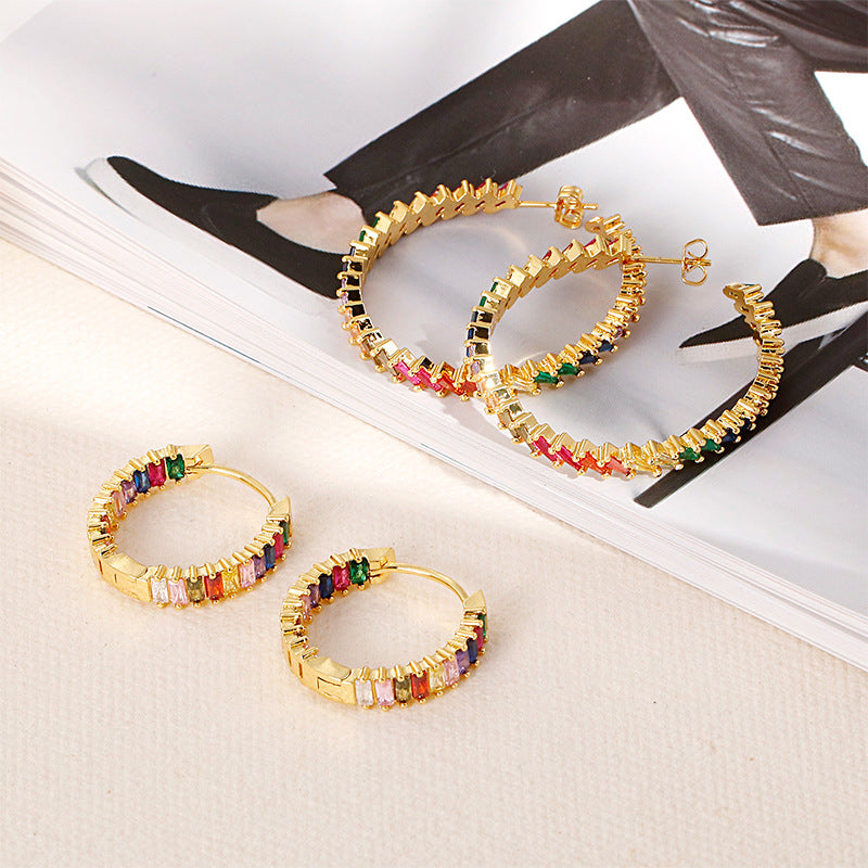 Gold-plated Copper Zircon Earrings With Colored Diamonds