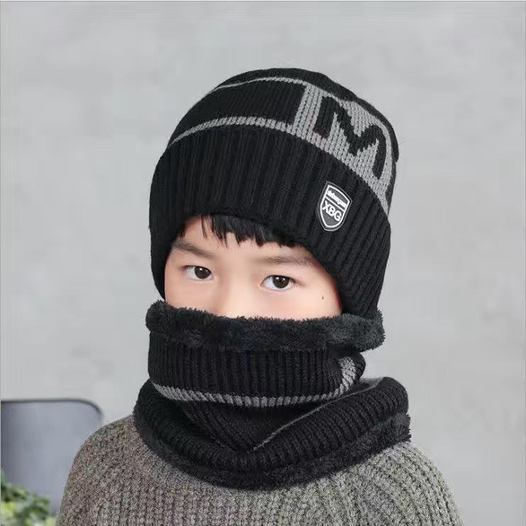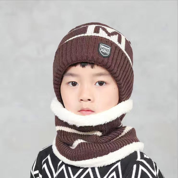 Children's Hats For Autumn And Winter New Boys' Hats And Bibs Set Korean Letters Knitted Hedging Warm Woolen Caps