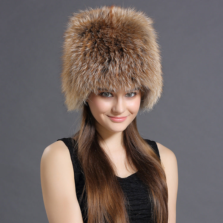 New European And American Fashion Fox Fur Woven Hat Fox Fur Straw Hat Fox Hat Fashion