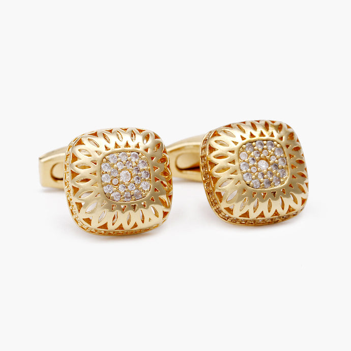Men's Cufflinks Gold Hollow Diamond Square Copper Cufflinks