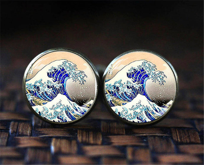 Kanagawa Time Gemstone Cufflinks French Shirt Men's Fashion Glass Cufflinks