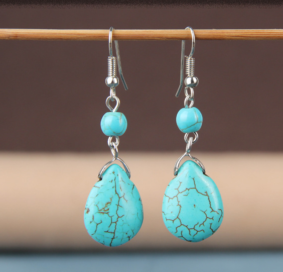 Ethnic retro simple drop water turquoise earrings hot featured texture stone earrings earrings cheap earrings