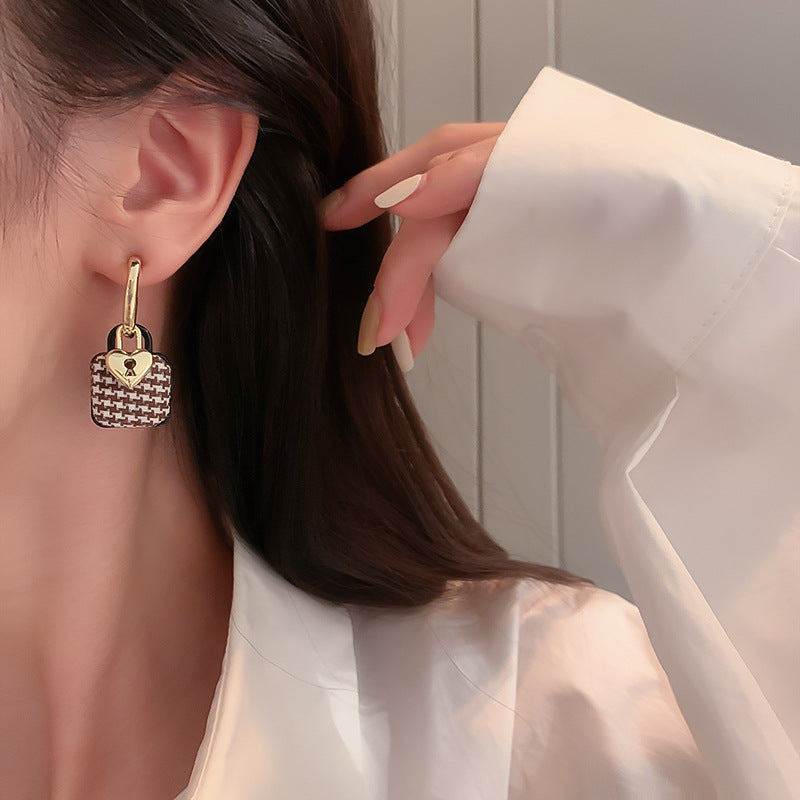 • Load image into Gallery viewer, Small Lock Earrings Vintage Checkerboard Earrings