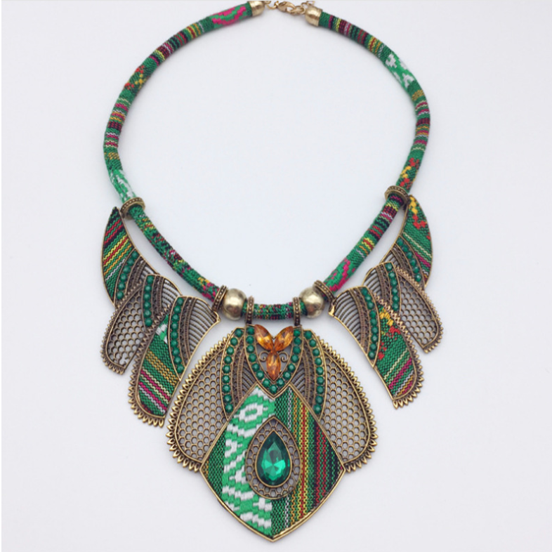 Ethnic Style Necklace Colorful Braided Rope Diamond Necklace