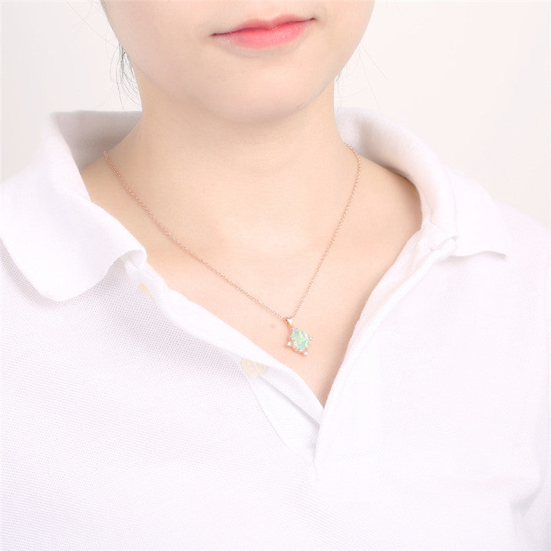 Creative high-quality Japanese material opal opal 8 * 10 opal oval diamond necklace