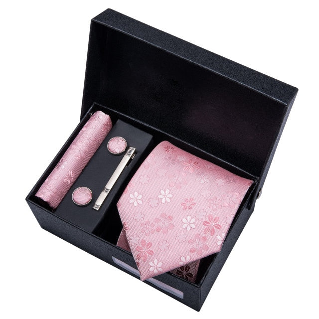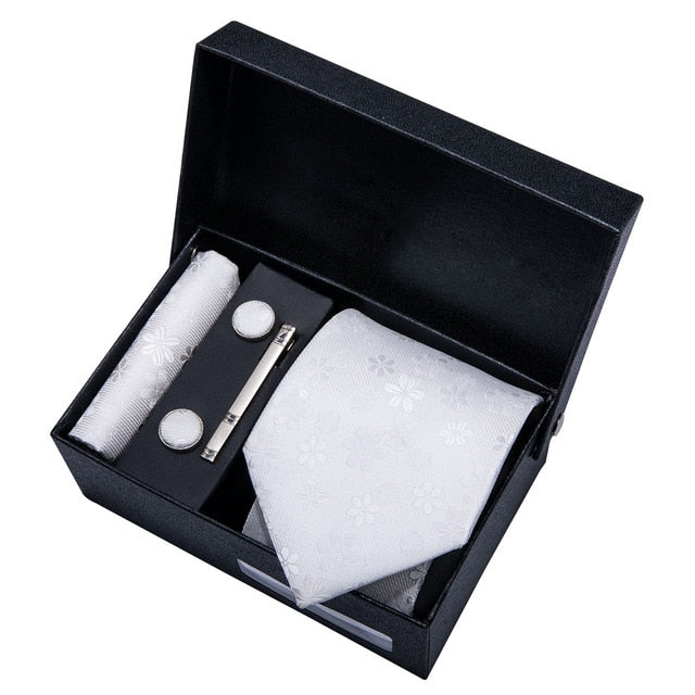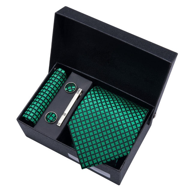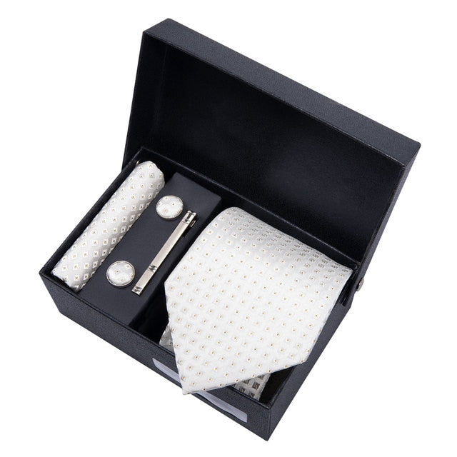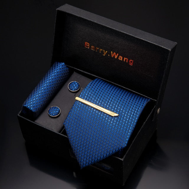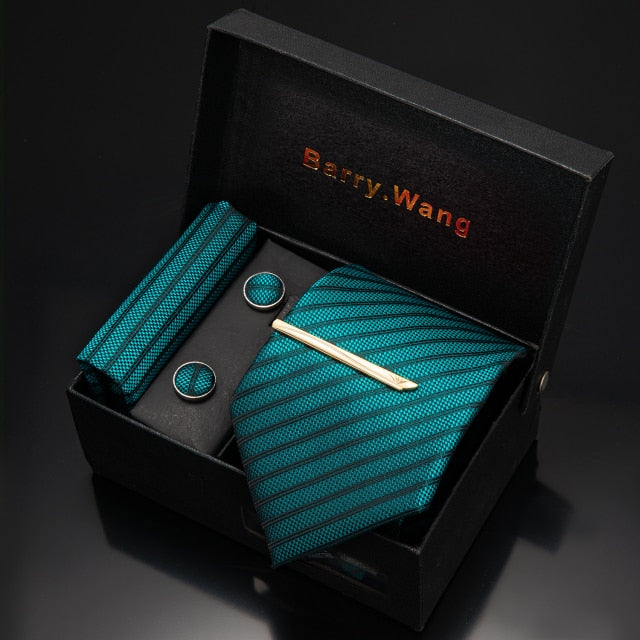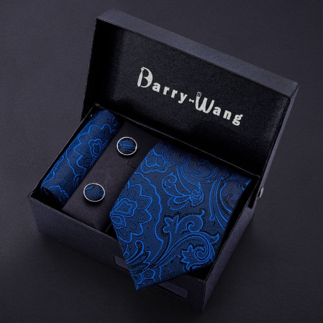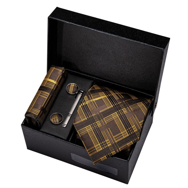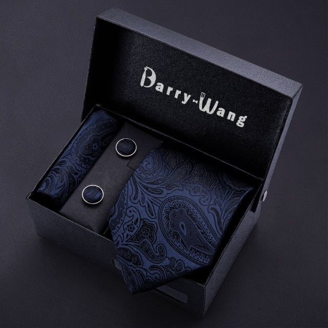 Gold Men Tie Paisley Silk Tie Pocket Square Gift Box Set Barry.Wang Luxury Designer Neck Tie For Men Male Gravat BB-5150