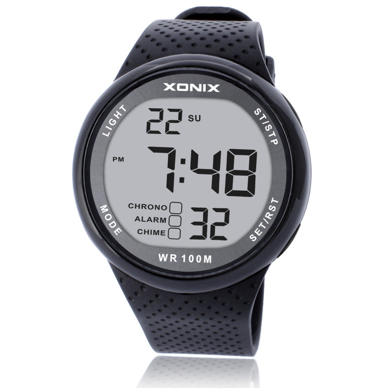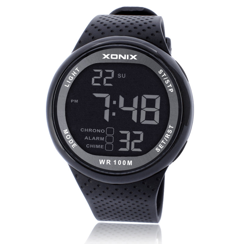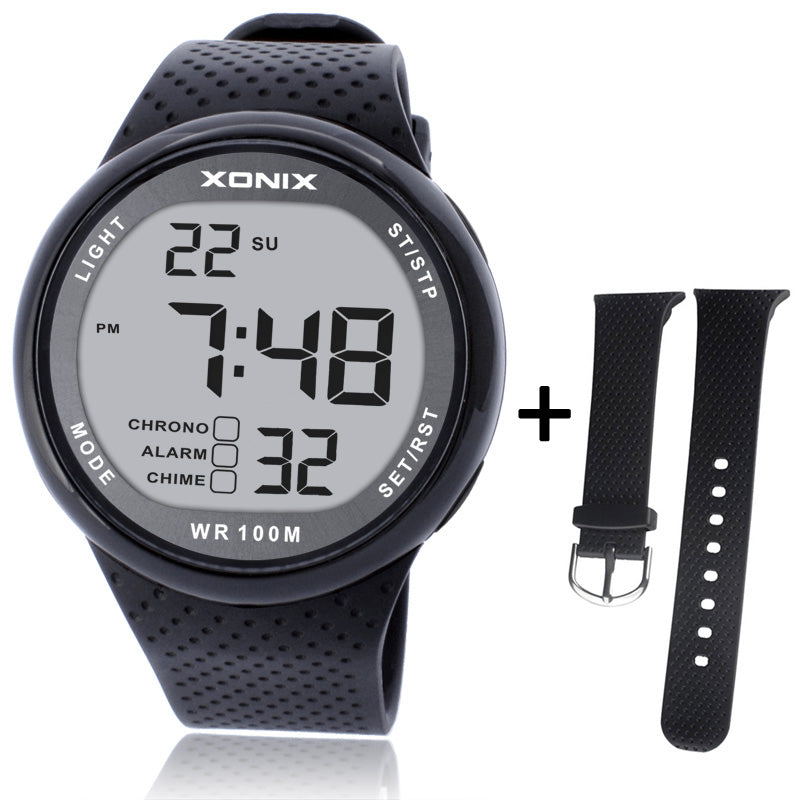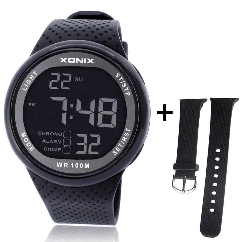 Additional features: 24-hour indication, GMT two places, chronograph, countdown, alarm, calendar, luminous, week display, month display