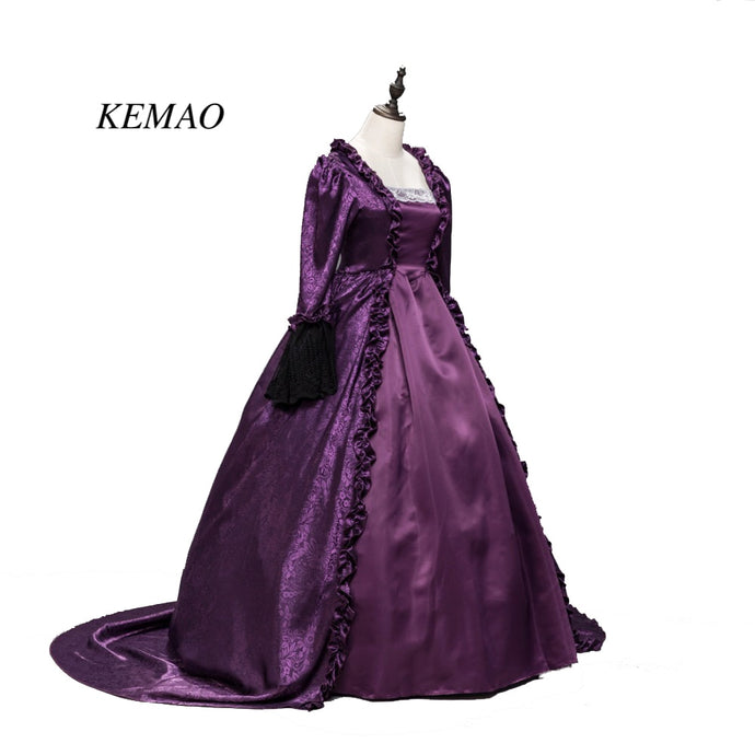 Purple High Quality Renaissance Fair Dark Queen Elizabeth I Ball Gown Period Dress with Train Reenactment Costume