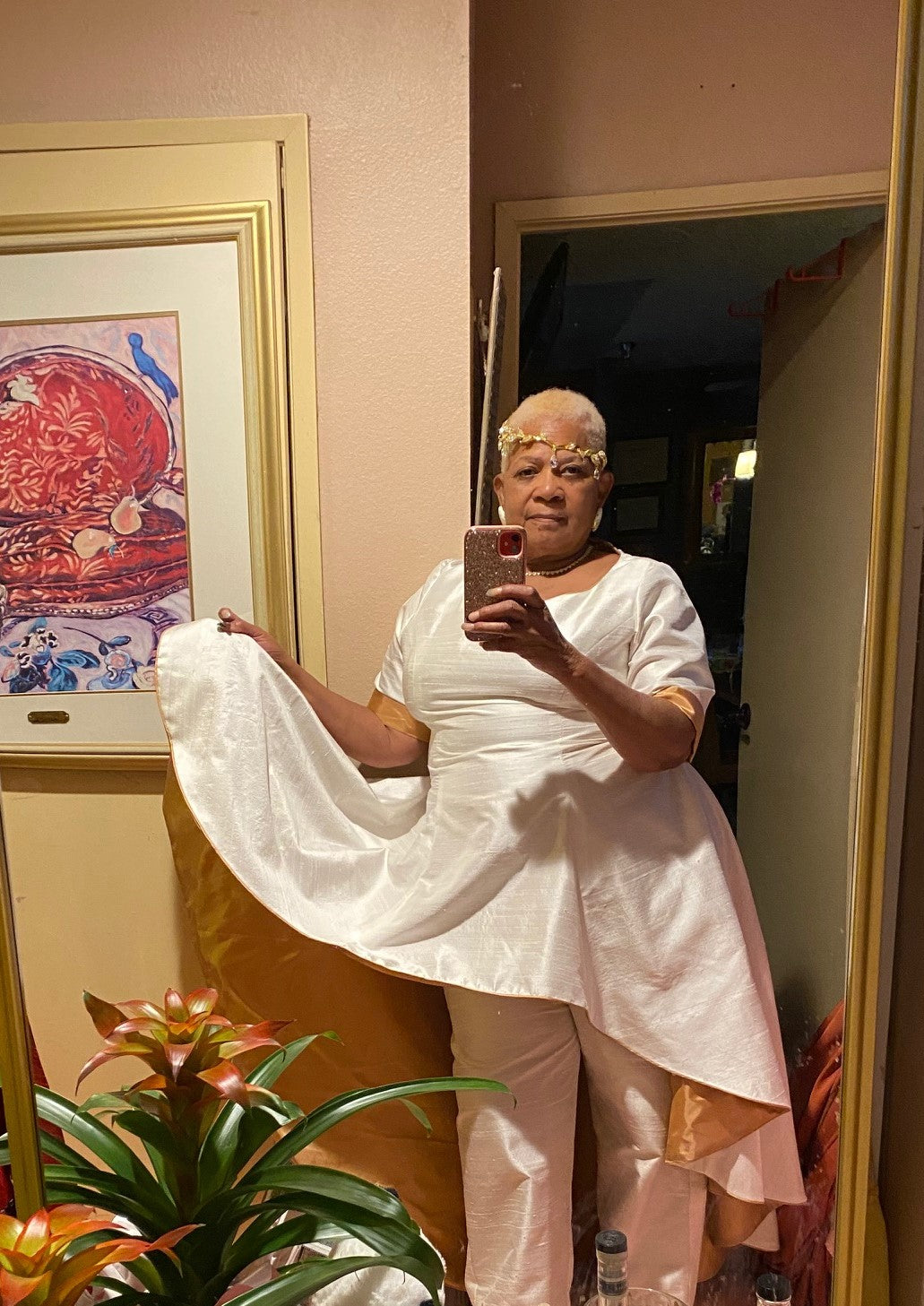 This design is called Floating because when you wear it; it floats with you. You feel as if you are flying just a tad above ground. This design is not an off the rack design. It is fitted to your body perfectly and you will be the only one wearing it quite like this. Ask us about our one-of-a-kind Designs.