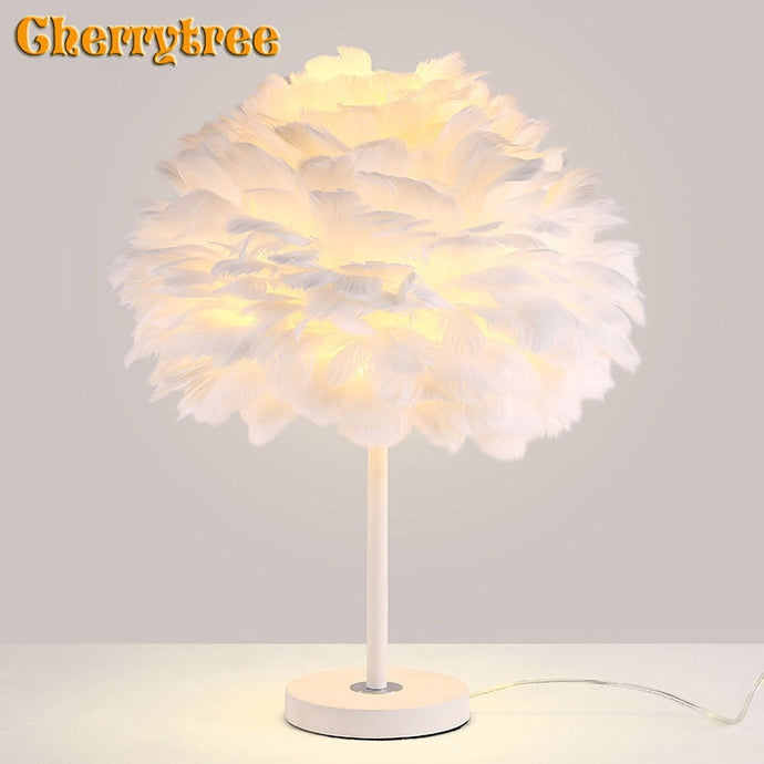 Modern Table Lamp Goose Feather Beside Lamp Nightstand Lights Bedroom Living Room Makeup Table Art Deco Vanity Light 90-260V