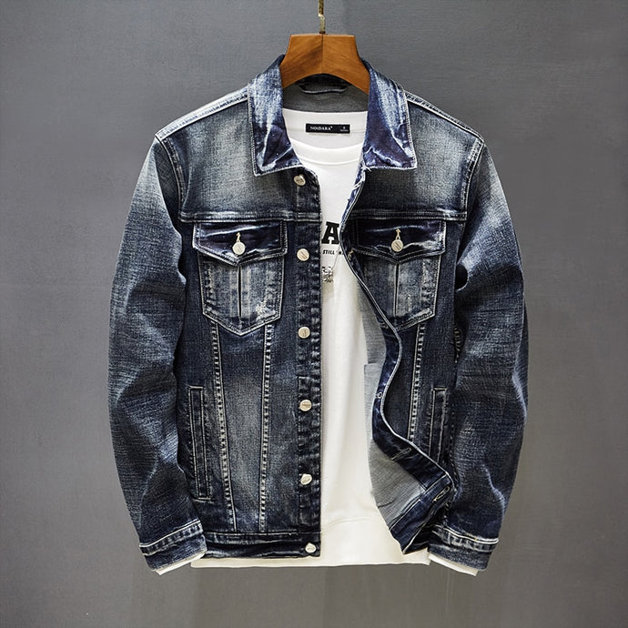 Autumn Men High Quality Stretch skinny denim jacket Button Retro Slim Street Wear Motorcycle Casual jeans Jacket Plus Size 5XL