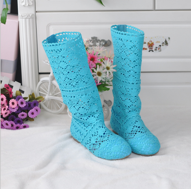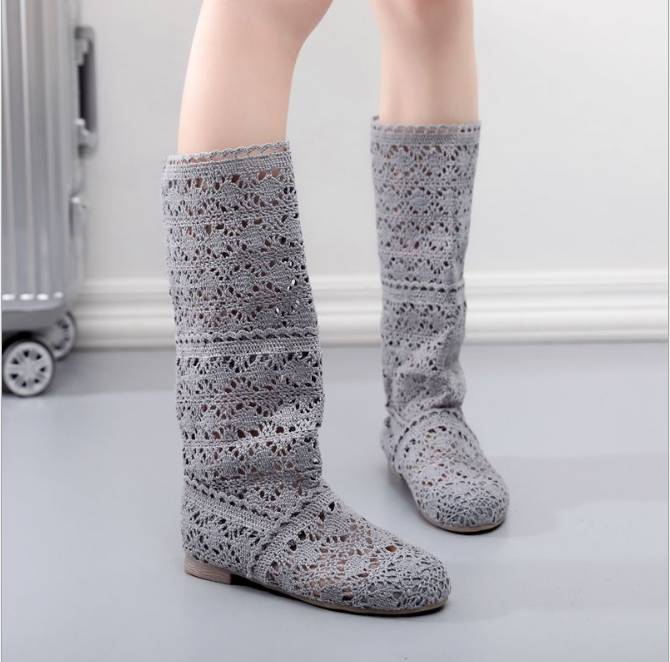 Breathable versatile net boots flat high-top women's shoes casual England Martin boots student knit boots