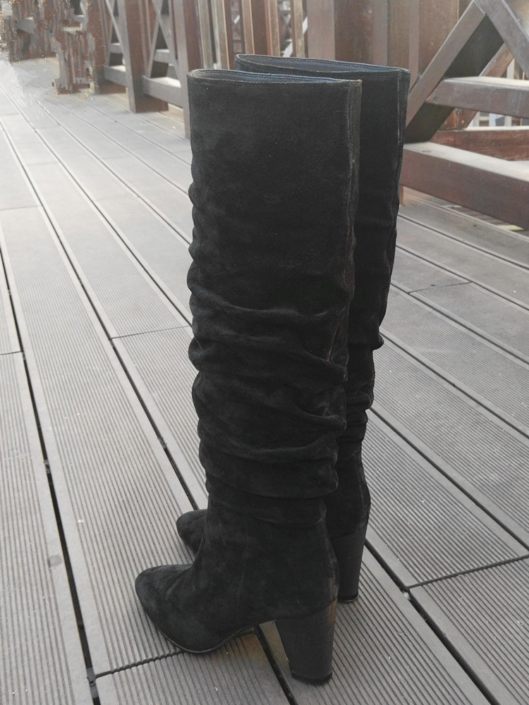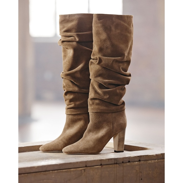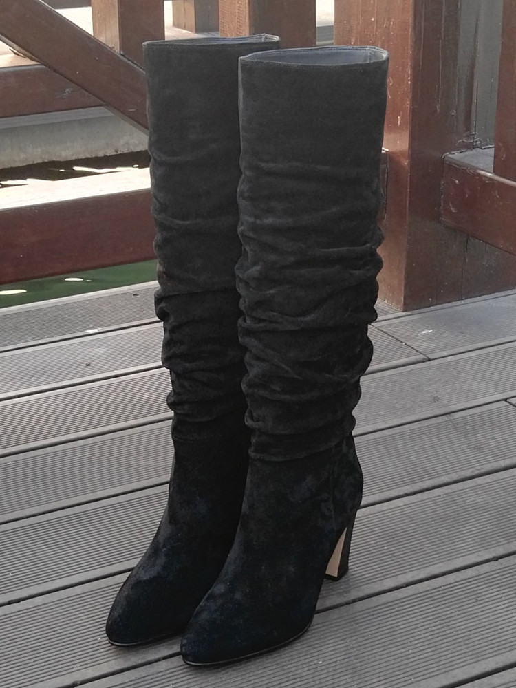 European And American Round Toe Pleated Thick Heel Mid-tube Fashion Boots