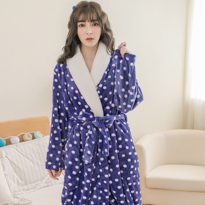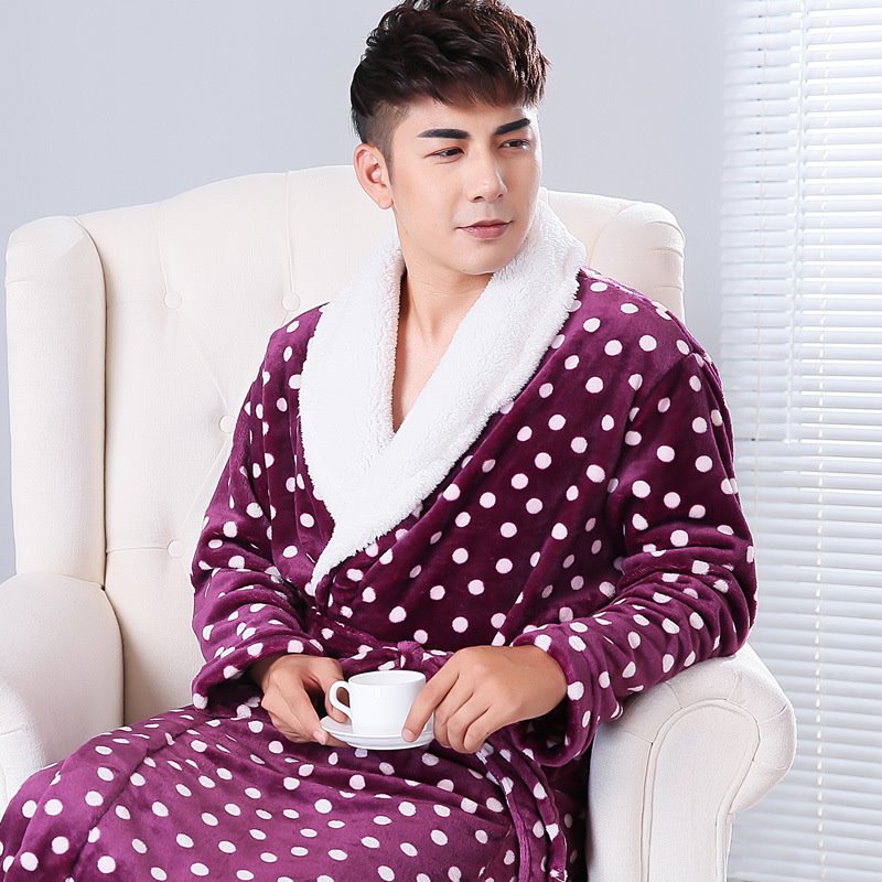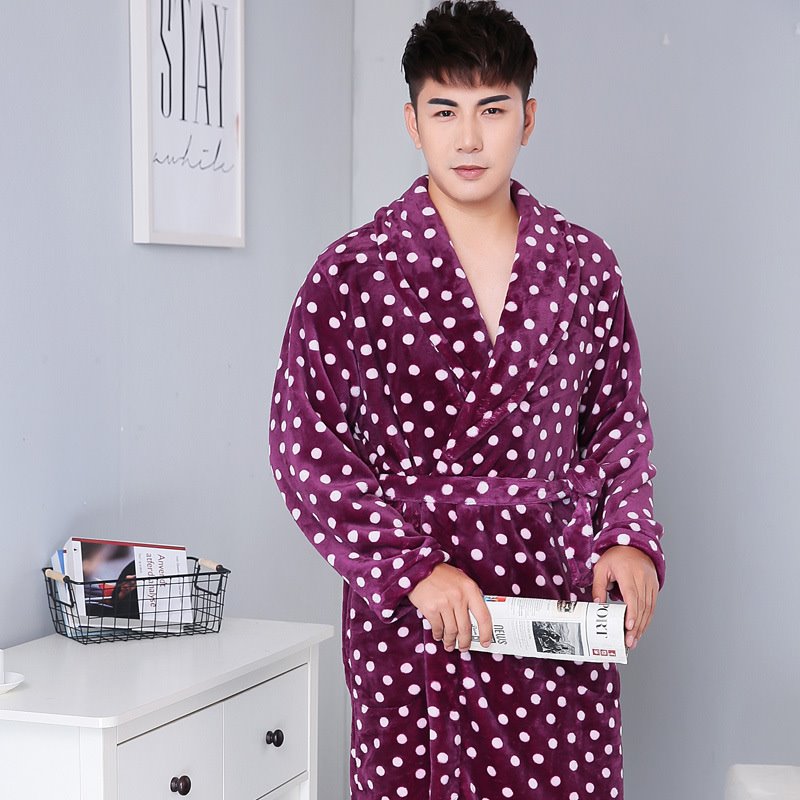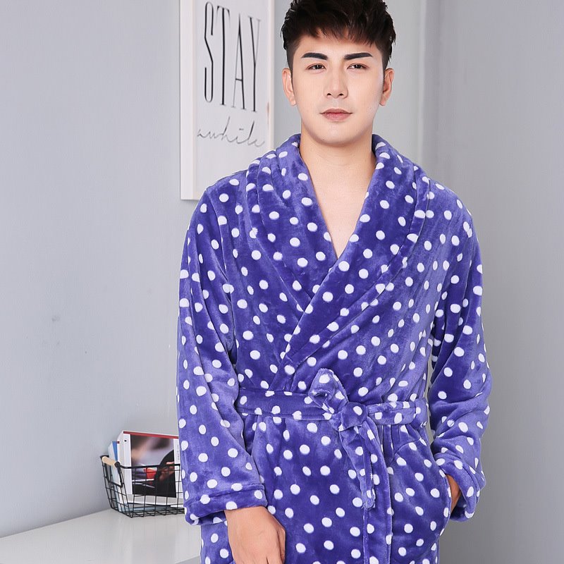 Thickened Polka Dot Robe Coral Fleece Nightgown Men's Bathrobe Pajamas
