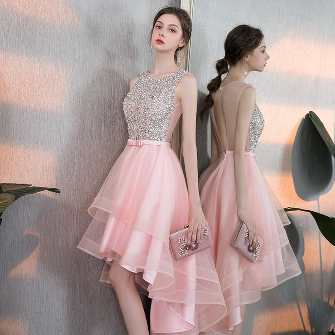 Elegant Ladies Backless Banquet Evening Dress Short and Long Fashion Bridesmaid wedding Pink Dress vestidos de fiesta