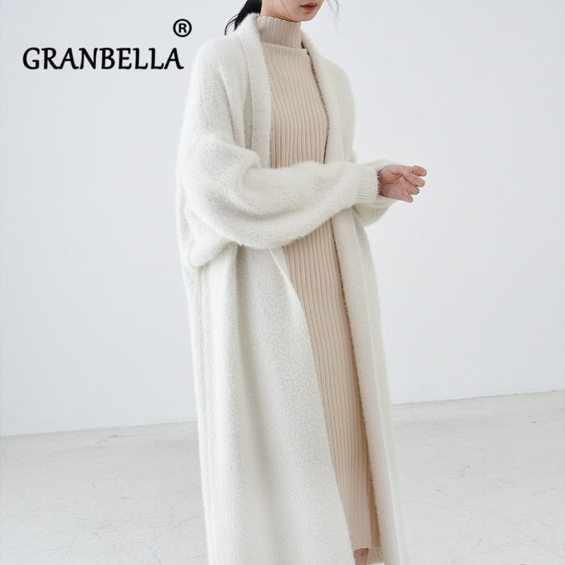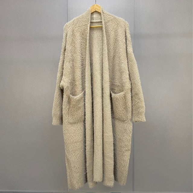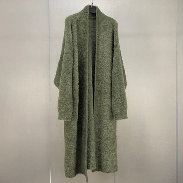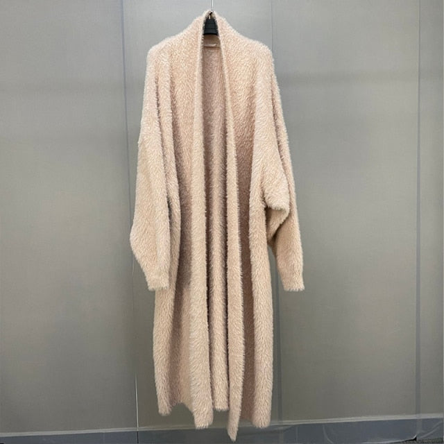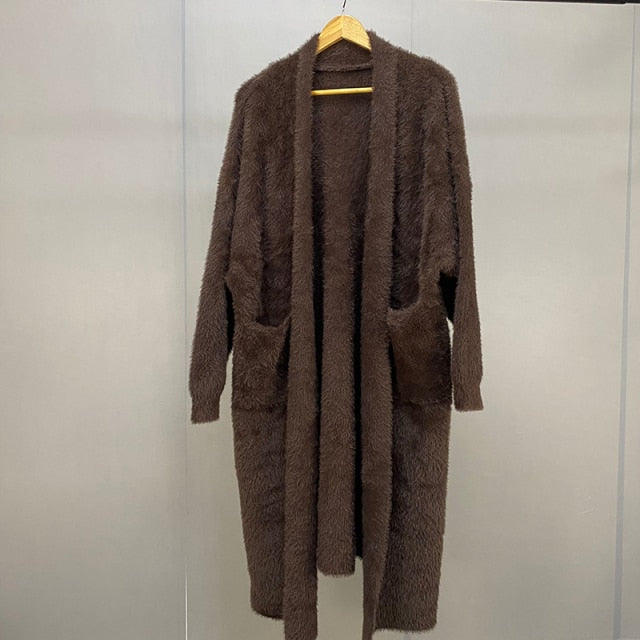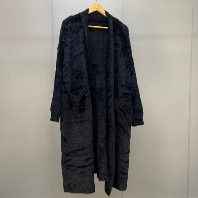Luxury Long Faux Mink Fur Cardigans For Women New 2021 Autumn Winter Women's Sweaters Oversize Coat Female Pull