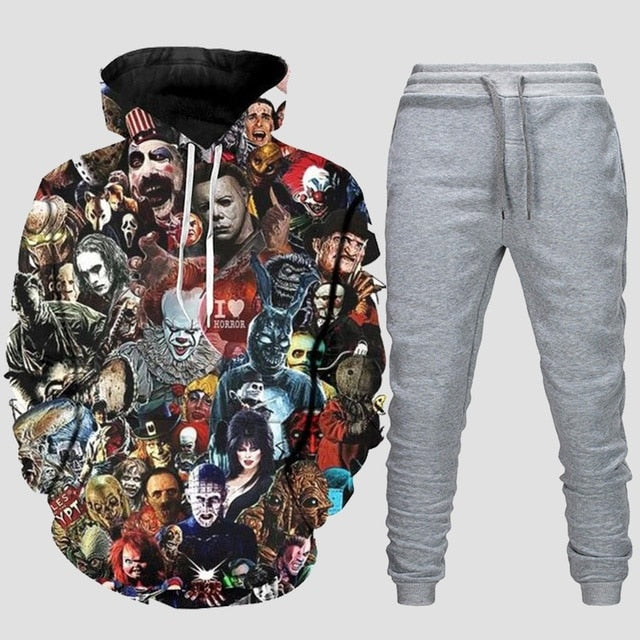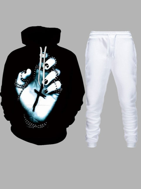 2021 Fashion 3D Hoodies Suits Men's Sweatshirt Joggers Funny Harajuku Print Set Fall Winter Unisex Tracksuit Clothes Pant