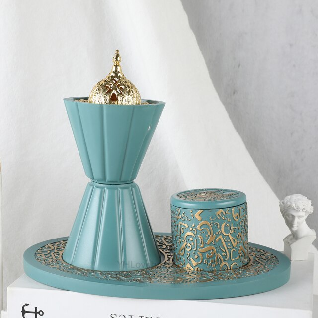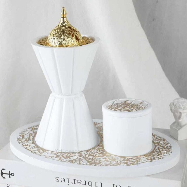 3 In 1 Arabic Incense Burner Set Middle East Muslim Ceramic Cone Censer Aromatherapy Furnace Tearoom Ornaments Christmas Gift