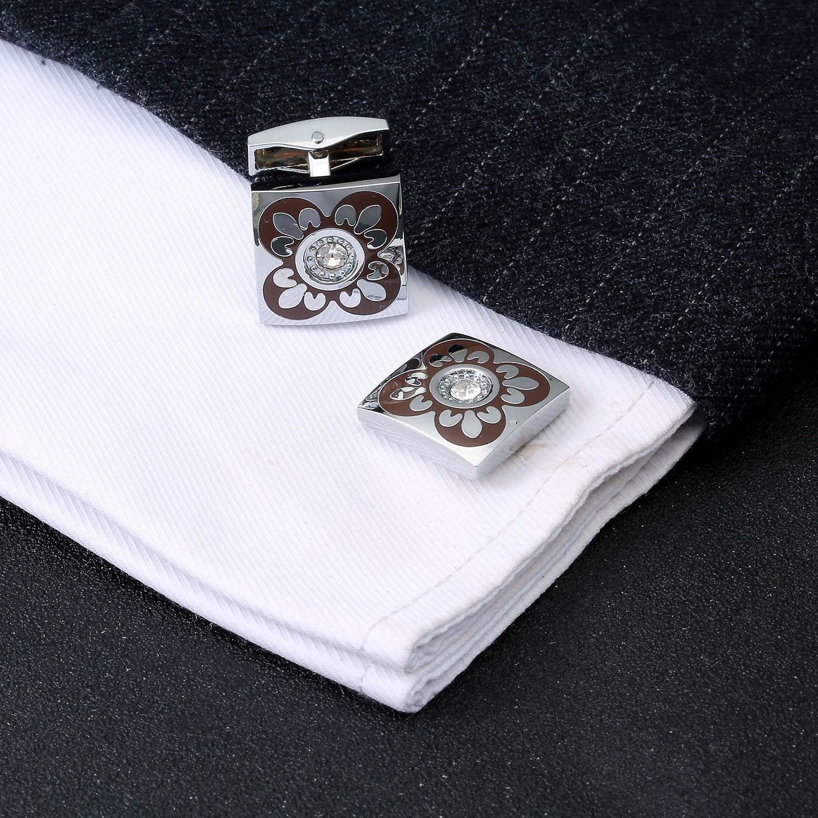 Square Roman Pattern Diamond Cufflinks Cufflinks