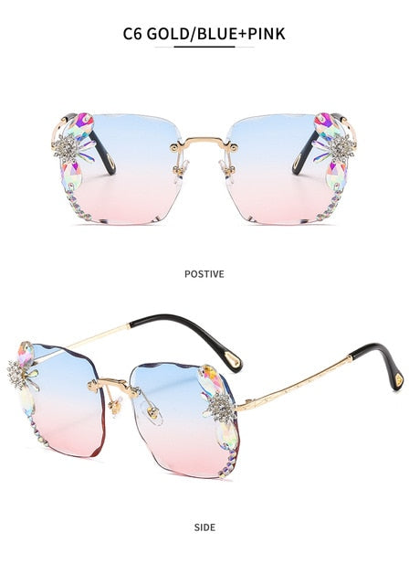 sunglasses women 2020 new fashon Vinage Sqaure luxury glasses Rimless rhinesotne sunglasses Shades For Women Summer oculos