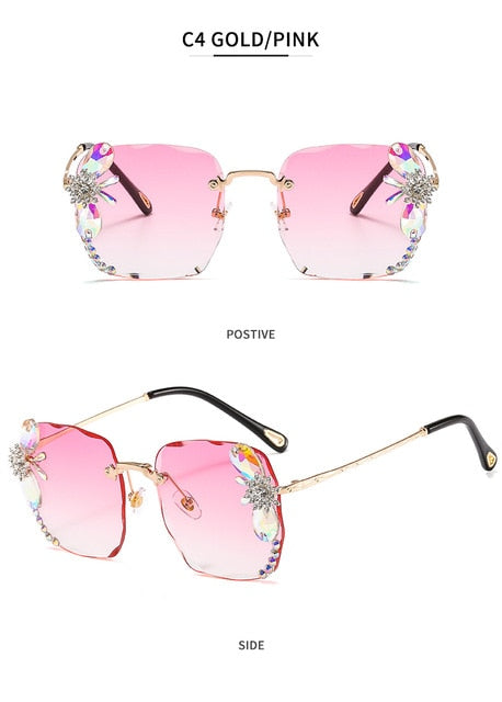 • Load image into Gallery viewer, sunglasses women 2020 new fashon Vinage Sqaure luxury glasses Rimless rhinesotne sunglasses Shades For Women Summer oculos